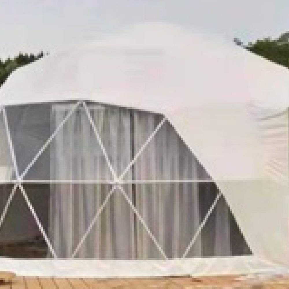 - una cupola geodetica con effetto “oscurante”, usando una copertura in PVC opaca (bianca o, su richiesta, disponibile anche in altri colori) per un living più discreto;